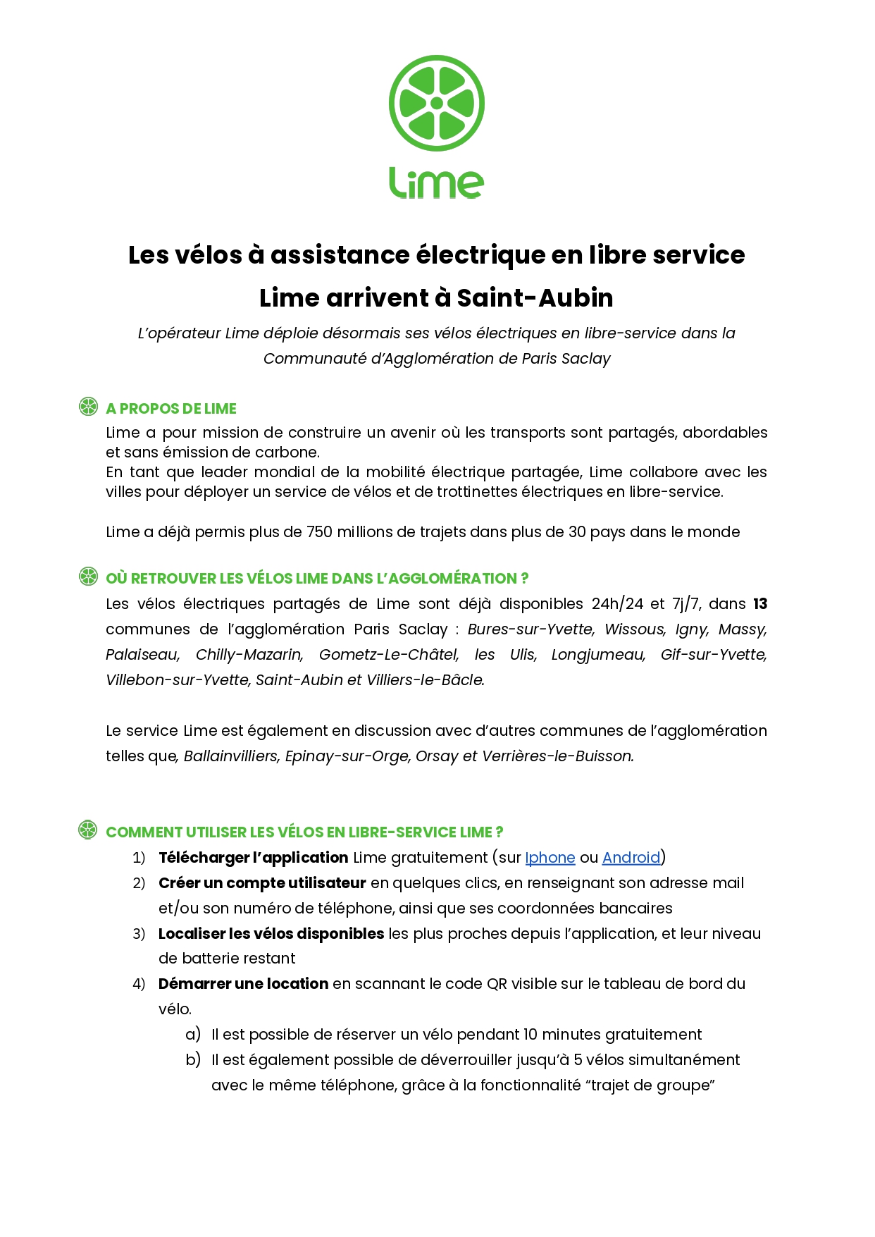 Un service de vélos à assistance électrique en libre service sur la commune avec LIME